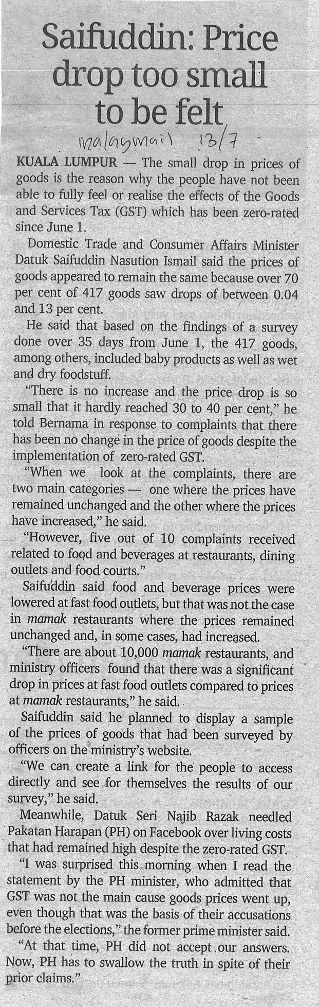 Malay Mail - Saifuddin: Price Drop Too Small To Be Felt |