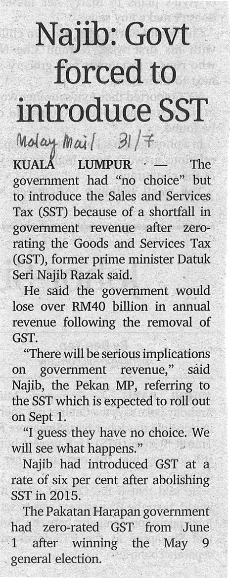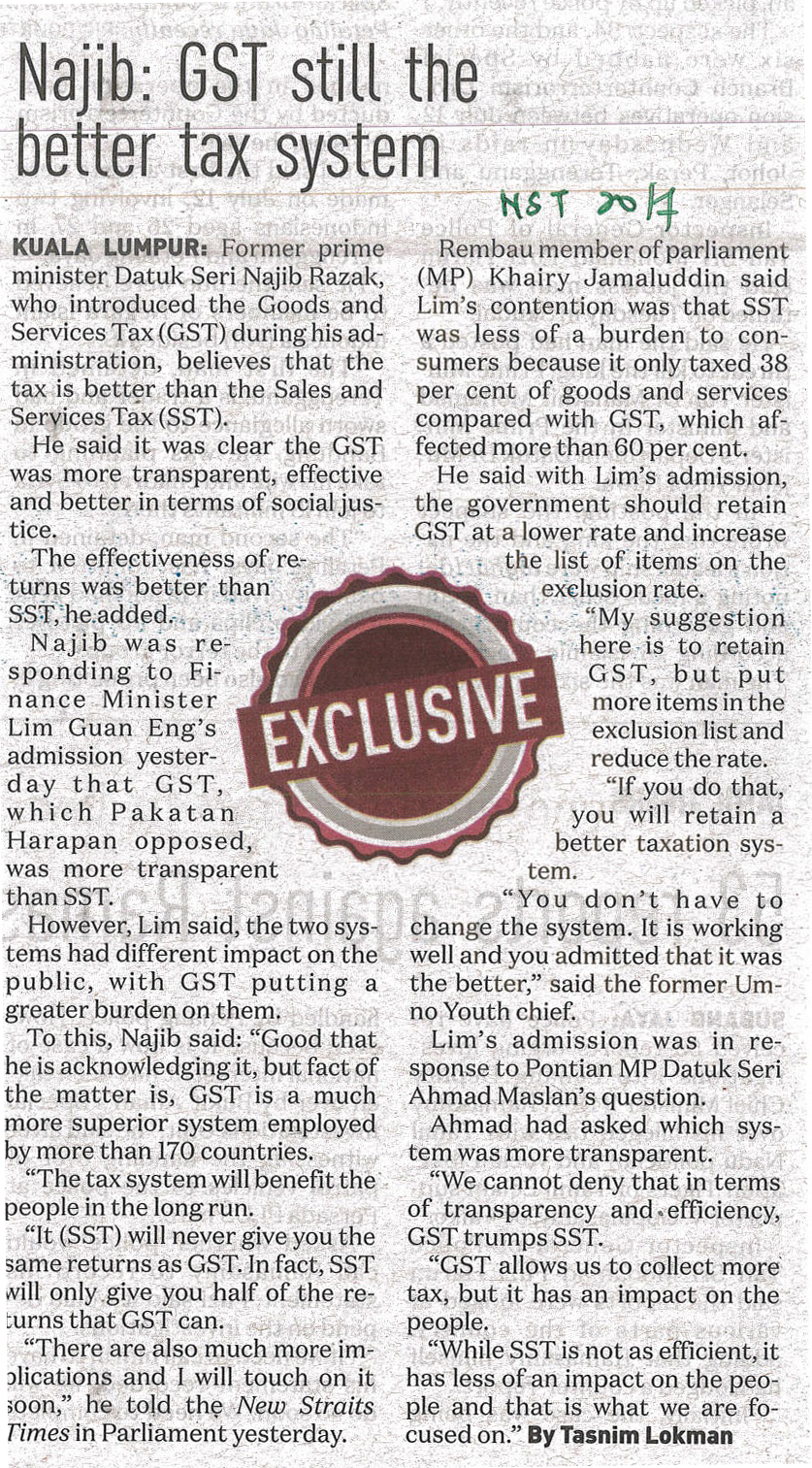 New Strait Times - Dr M: Under SST, Customers Pay Only When They Buy |