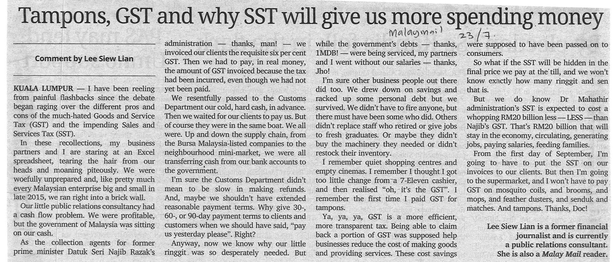 Malay Mail - Tampons, GST And Why SST Will Give Us More Spending Money