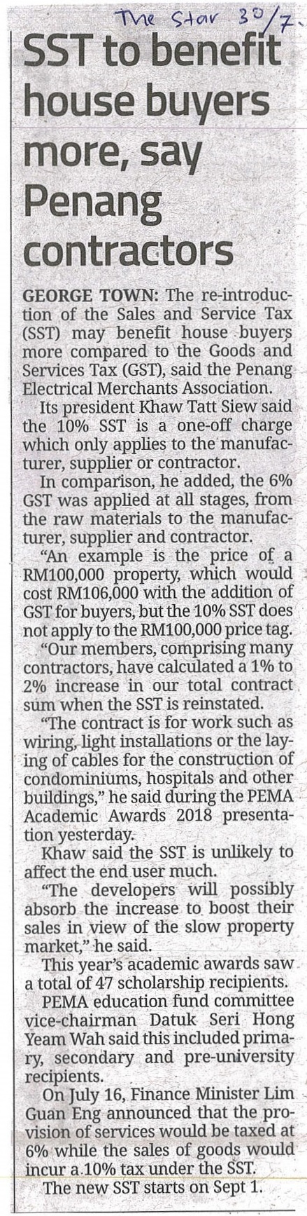 The Star - SST To Benefit House Buyers More, Say Penang Contractors