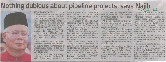 The Star - Nothing Dubious About Pipeline Projects, Says Najib |