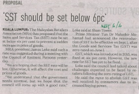 New Strait Times - 'SST Should Be Set Below 6pc' |