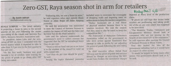 Malay Mail - Zero-GAT, Raya Season Shot In Arm For Retailers |