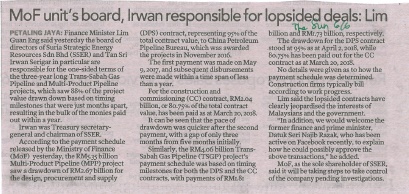 The Sun - MoF Unit's Board, Irwan Responsible For Lopsided Deals: Lim |