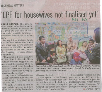 New Strait Times - 'EPF For Housewives Not Finalised Yet' |