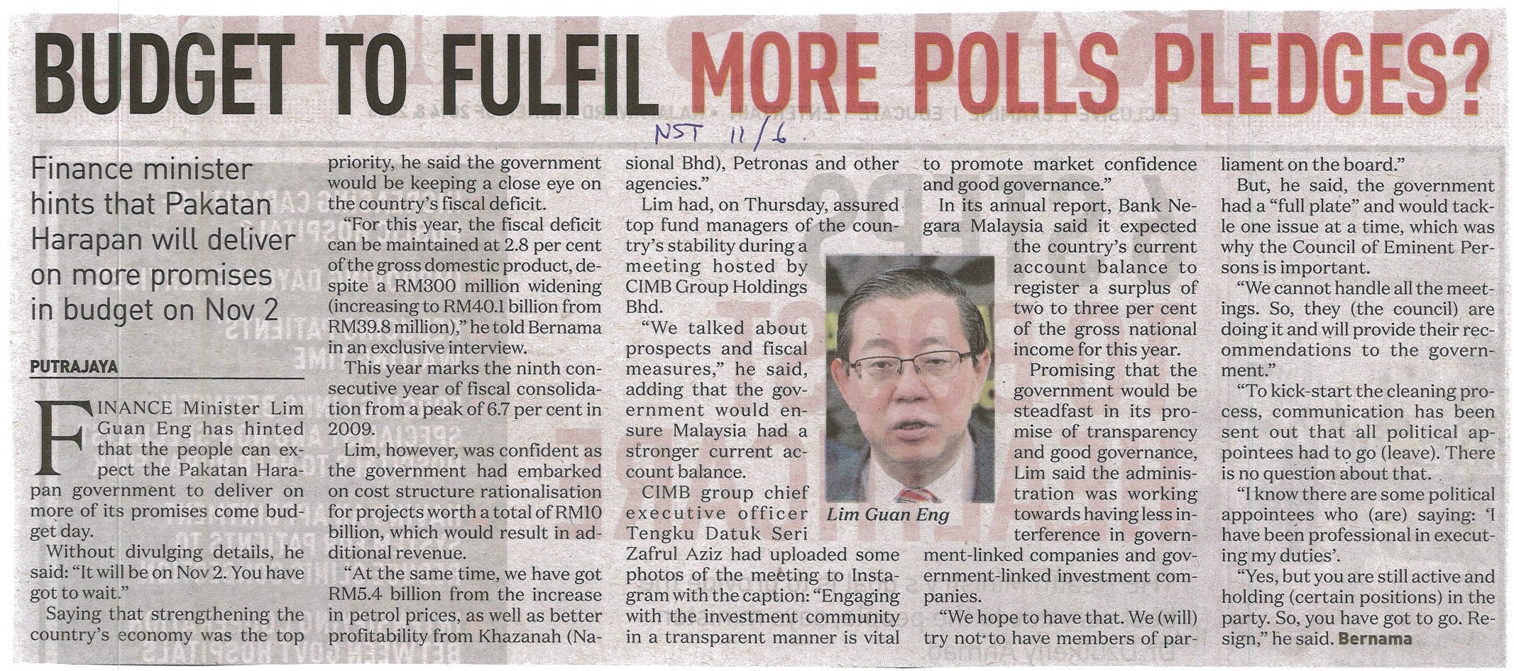 New Strait Times - Budget To Fulfil More Polis Pledges? |