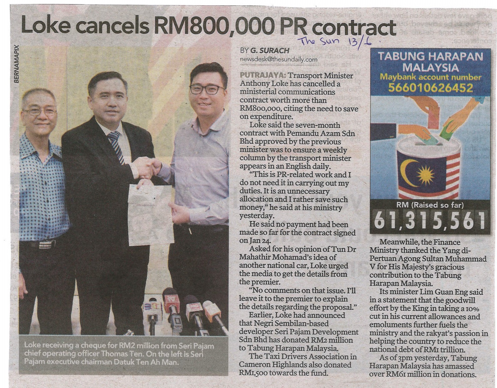 The Sun - Loke Cancels RM800,000 PR Contract |