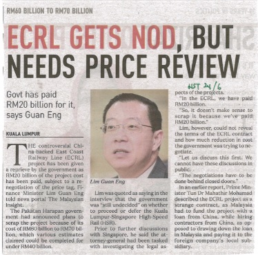 New Strait Times - ECRL Gets Nod, But Needs Price Review |