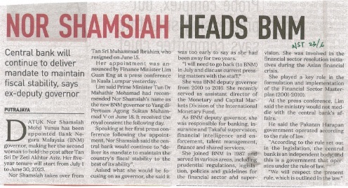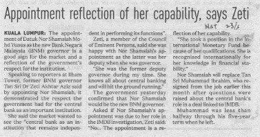New Strait Times - Appointment Reflection Of Her Capability, Says Zeti