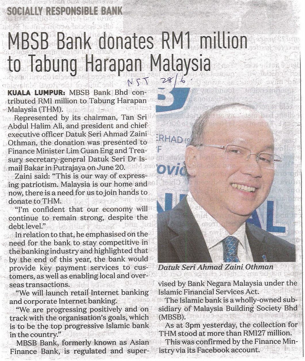 New Strait Times - MBSM Bank Donates RM1 Million To Tabung Harapan Malaysia