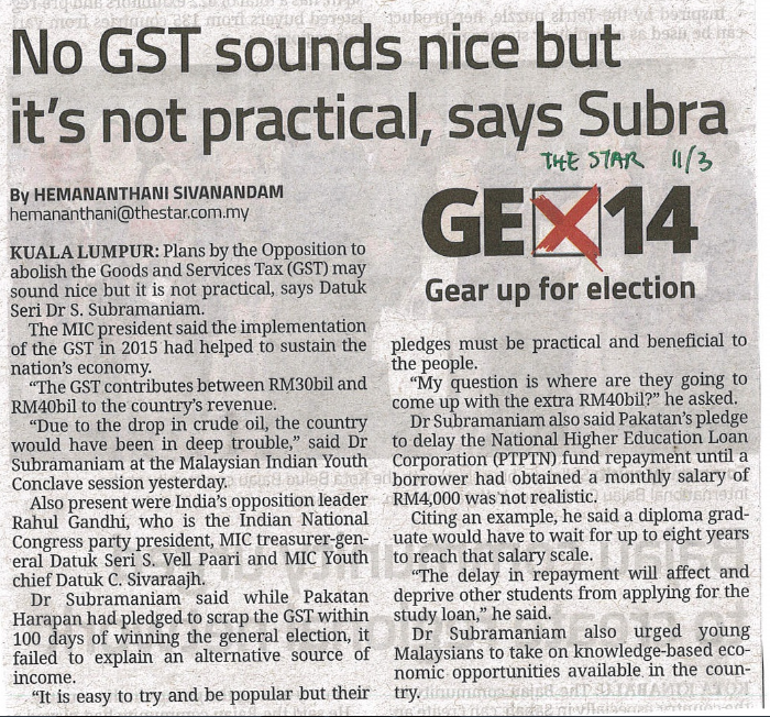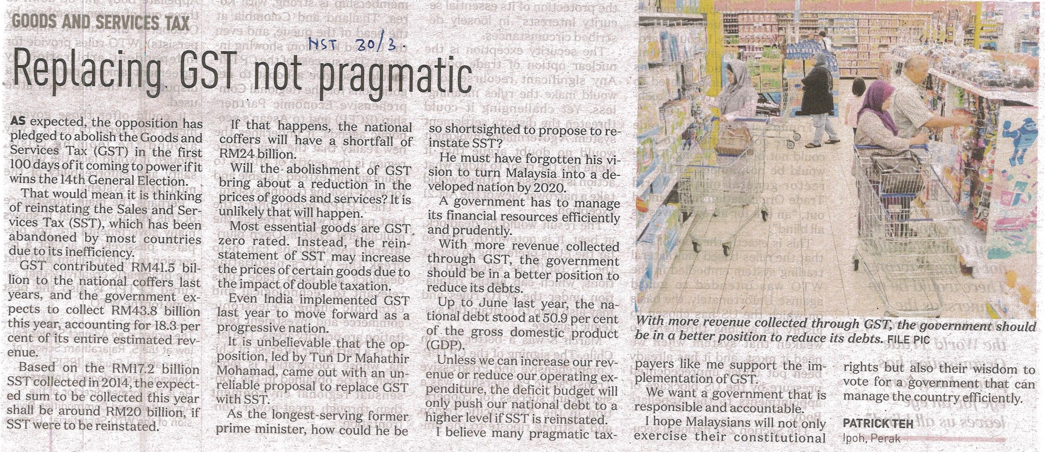 New Strait Times - Pakatan Might Cut Handouts If It Abolishes GST |