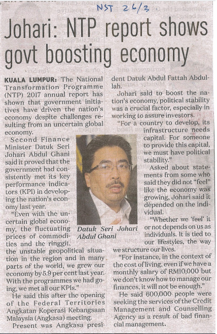 New Strait Times - Johari: NTP Report Shows Govt Boosting Economy |