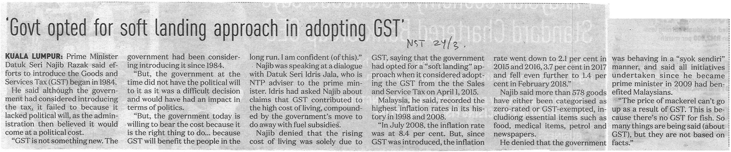 New Strait Times - Govt Opted For Soft Landing Approach In Adopting GST |