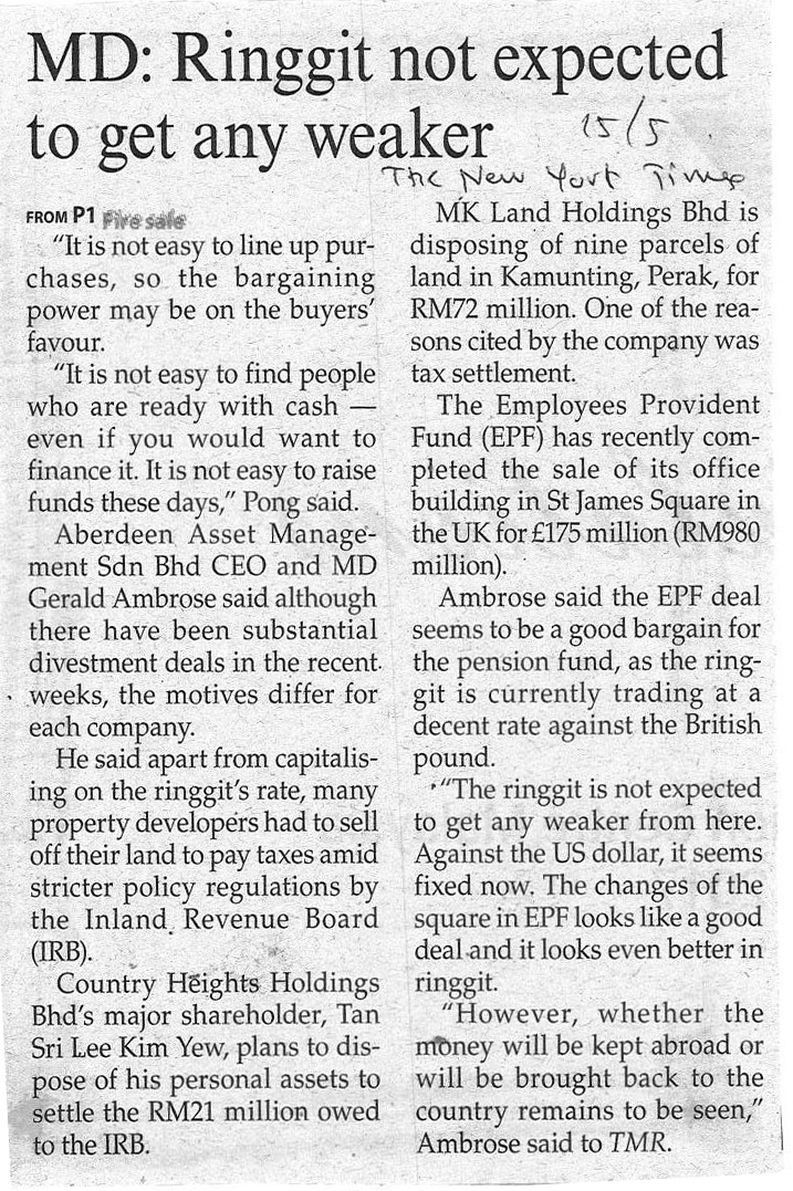 The New York Times - MD: Ringgit Not Expected To Get Any Weaker |