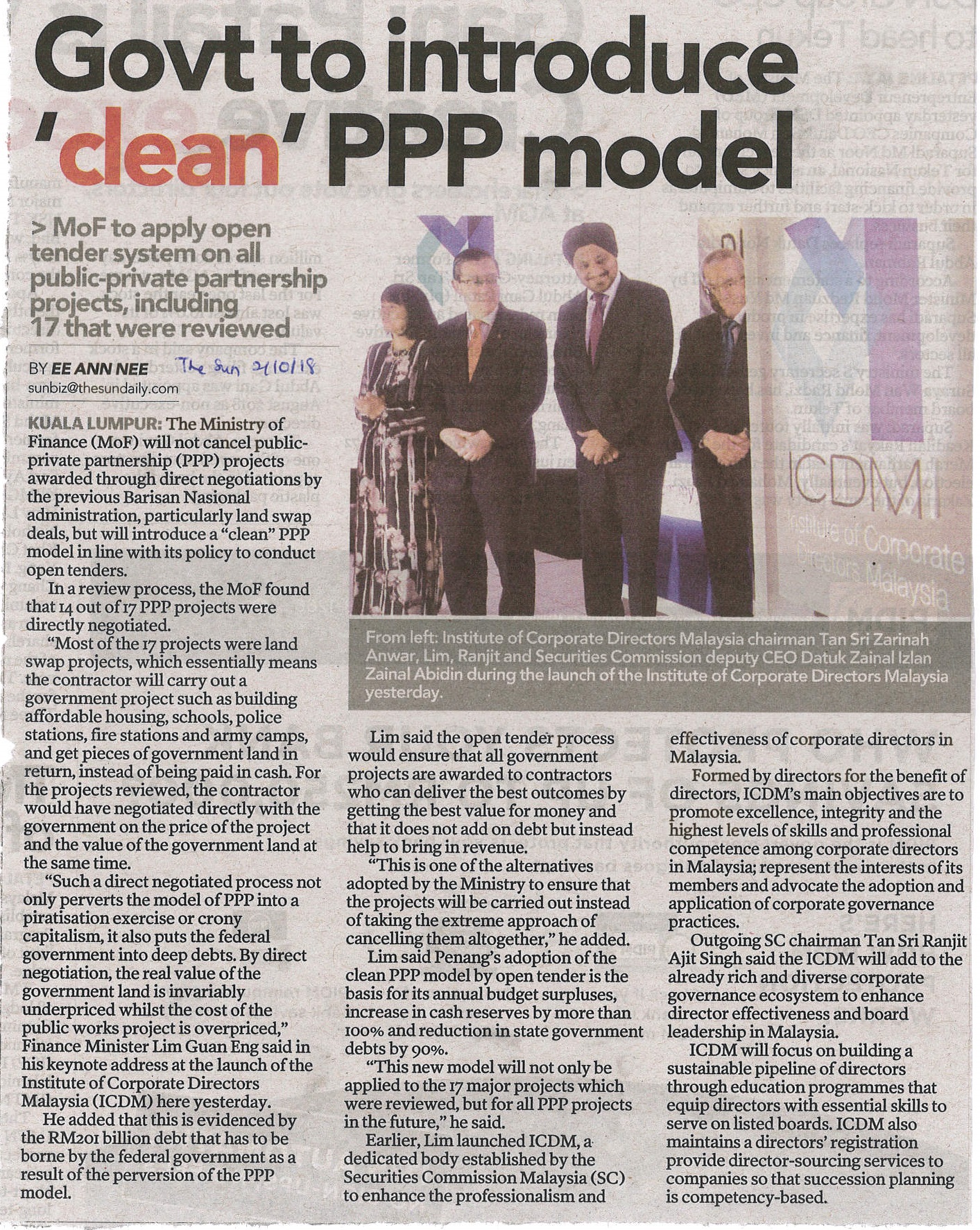 The Sun - Govt To Introduce 'Clean' PPP Model |