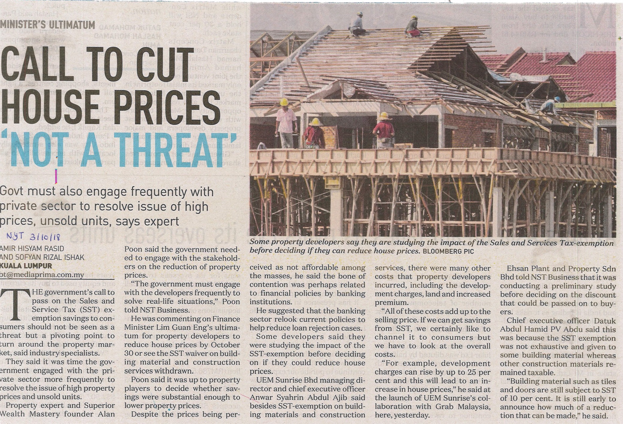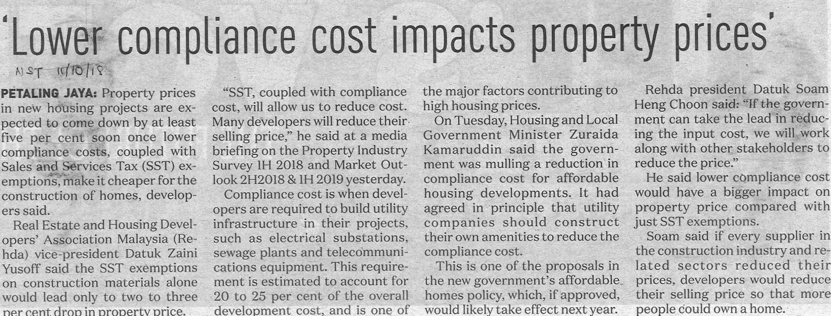 New Straits Times - Lower Compliance Cost Impacts Property Prices |