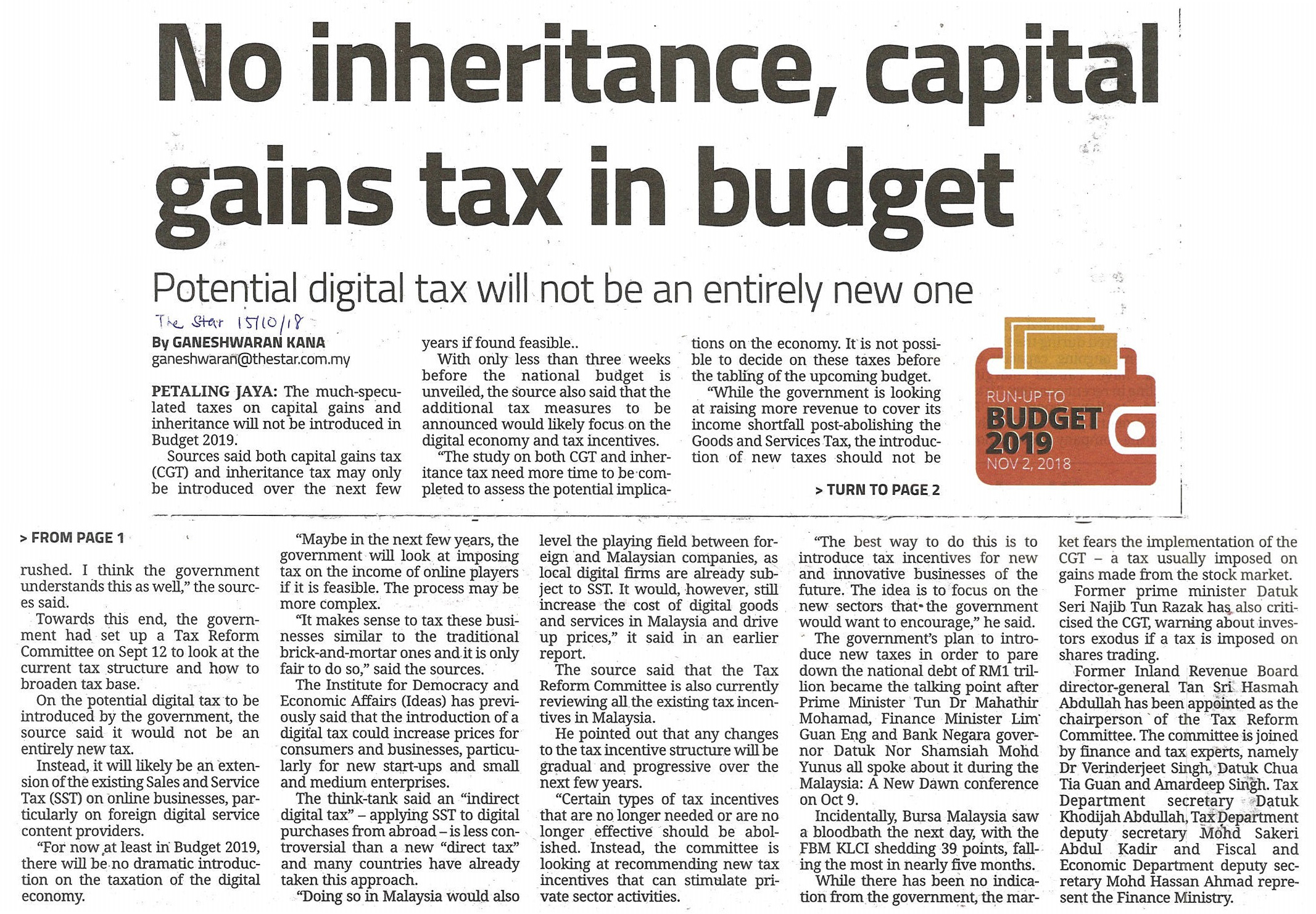 The Star - No Inheritance, Capital Gains Tax In Budget |