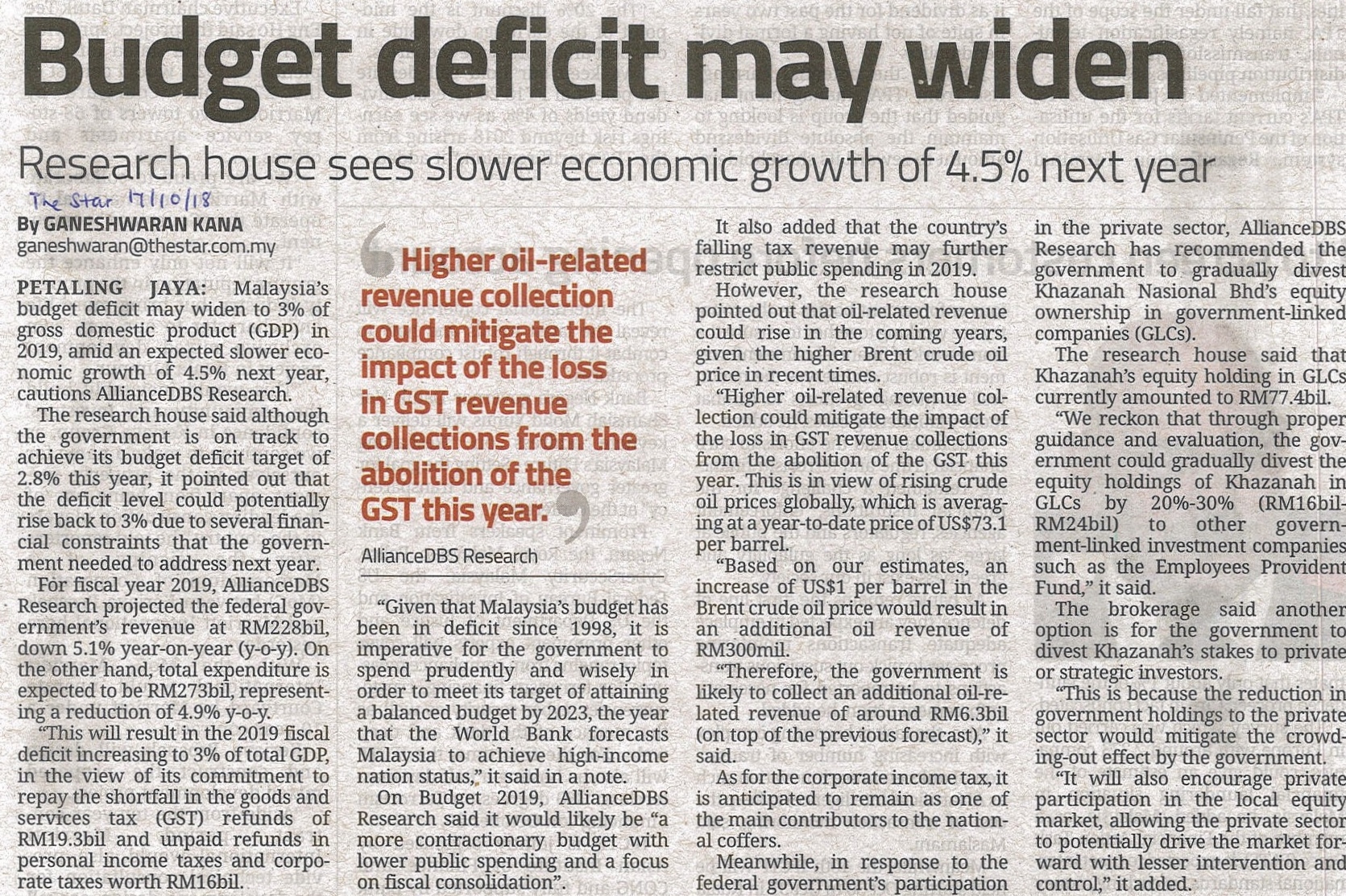 'New Straits Times - Consumer Stocks To Perform Better In Q3' |