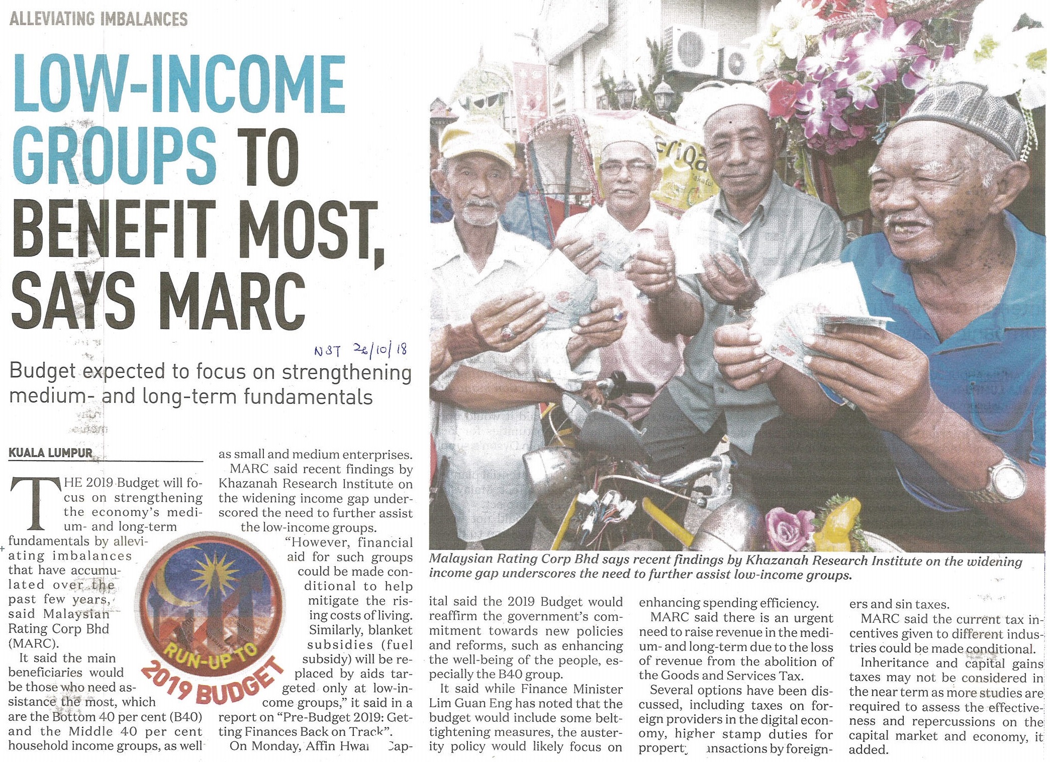 New Straits Times - Low-Income Groups To Benefit Most, Says Marc |