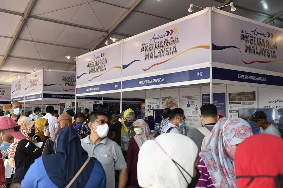 Sekitar hari pertama suasana di booth Kementerian Kewangan Malaysia sempena Jelajah Aspirasi Keluarga Malaysia Negeri Selangor yang telah dirasmikan oleh YAB Dato' Sri Ismail Sabri Yaakob , Perdana Menteri.
