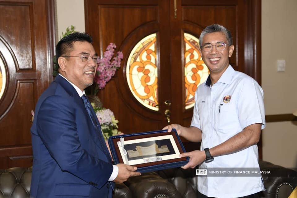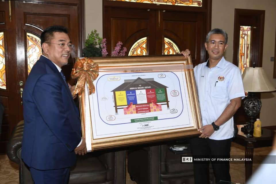 YB Senator Tengku Dato' Sri Zafrul Tengku Abdul Aziz, Menteri Kewangan telah membuat kunjungan hormat ke atas YAB Datuk Hj. Sulaiman Md Ali, Ketua Menteri Melaka untuk berbincang mengenai isu-isu semasa, perkembangan ekonomi negeri dan maklum balas berkenaan Belanjawan 2021.