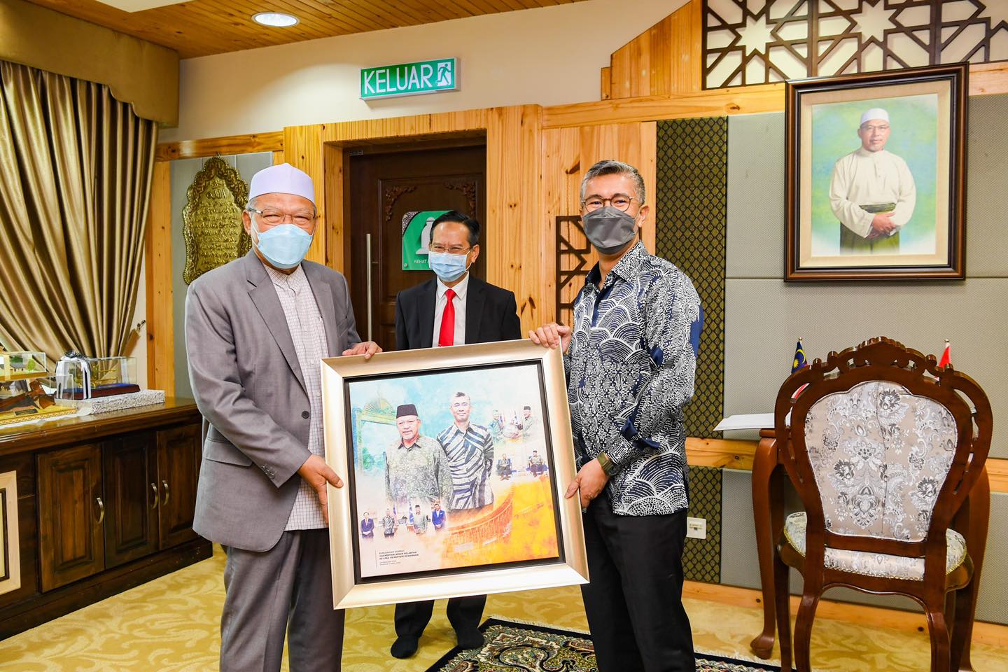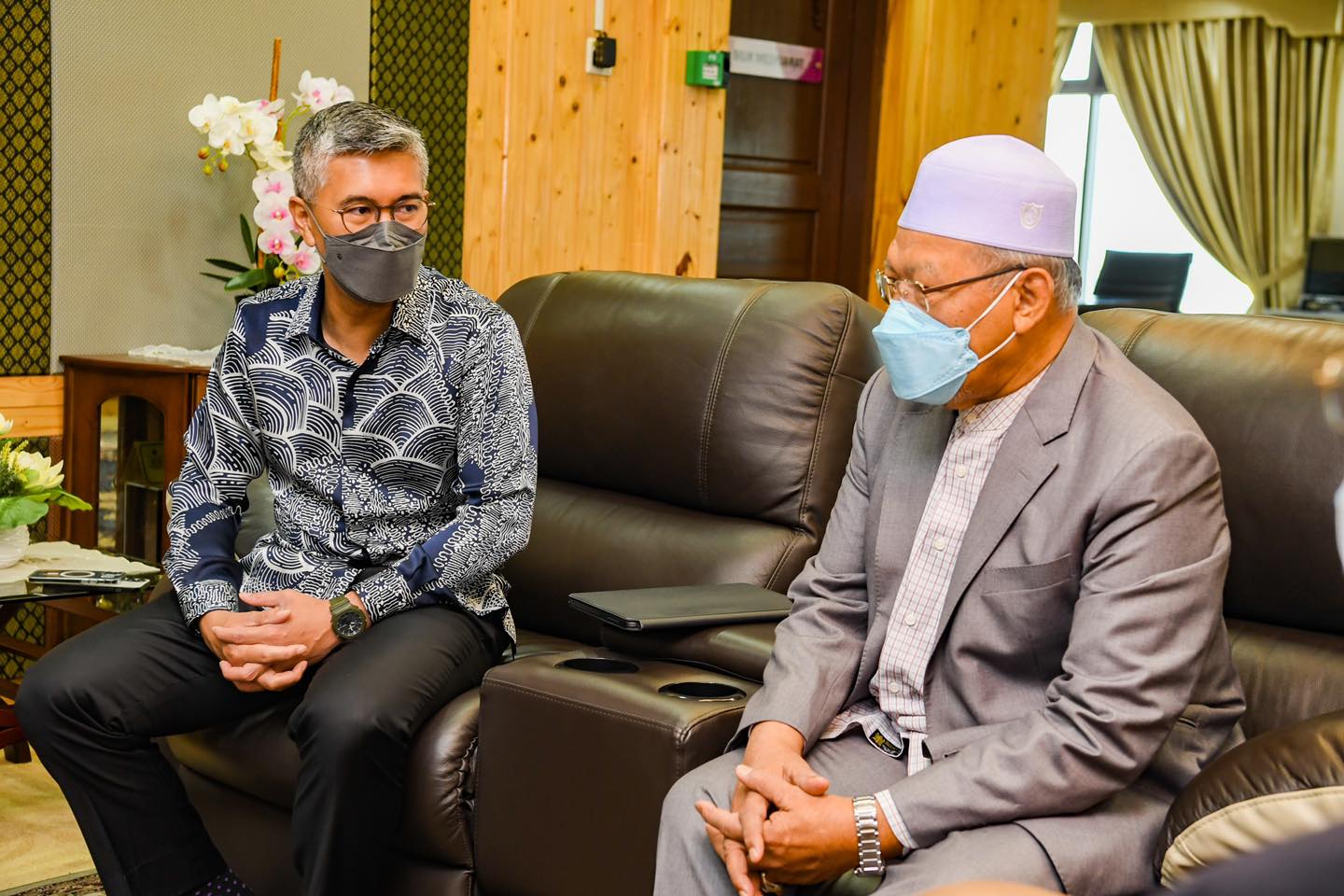 YB Senator Tengku Datuk Seri Utama Zafrul Tengku Abdul Aziz, Menteri Kewangan telah berkesempatan mengadakan kunjungan hormat ke atas YAB Dato' Bentara Kanan Ustaz Dato' Haji Ahmad Yakob, Menteri Besar Kelantan sempena Program Jelajah Bajet 2022 ke Kelantan.