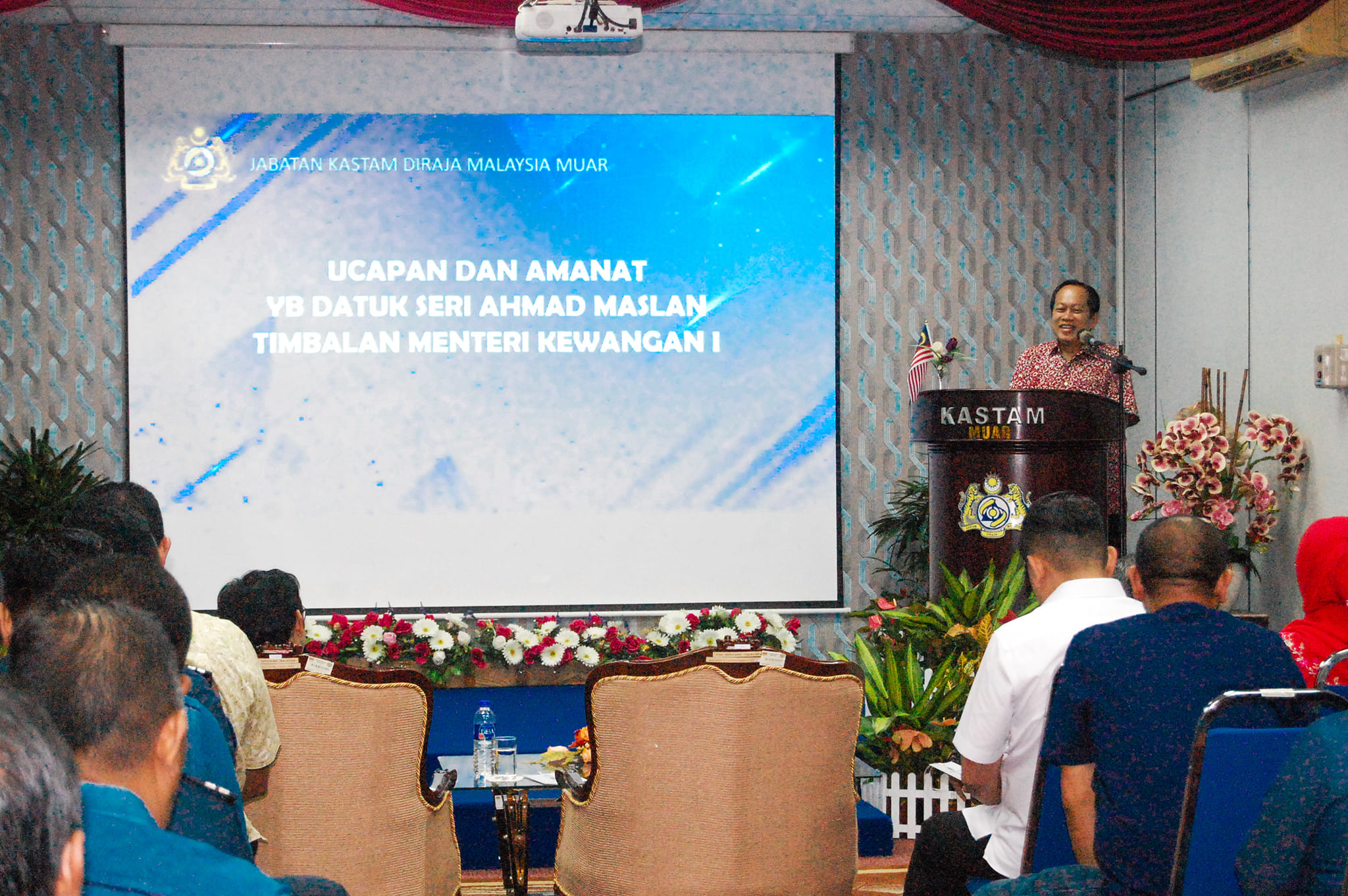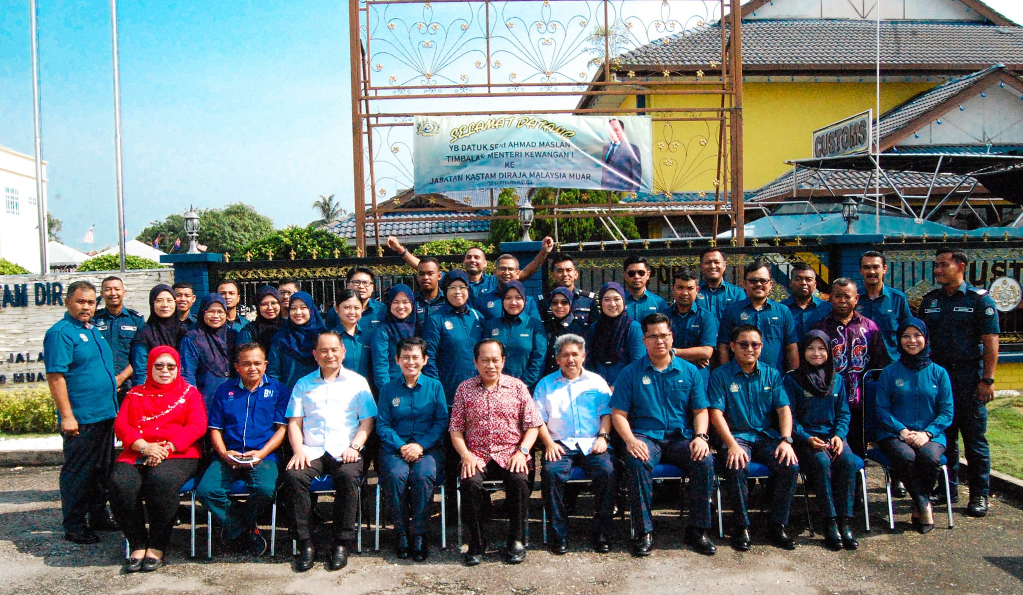 YB Datuk Seri Ahmad Maslan, Timbalan Menteri Kewangan I telah mengadakan lawatan kerja ke Jabatan Kastam Diraja Malaysia (JKDM) Muar dan telah disambut baik oleh YBrs. Tuan Shaharudin Abdul Majid, MTT Pengarah Kastam Negeri Johor, Puan Lee Heng Liang, Ketua Kastam Daerah Stesen Muar serta warga kerja JKDM Muar.