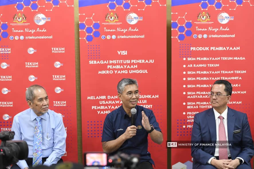 YB Senator Tengku Dato' Sri Zafrul Tengku Abdul Aziz, Menteri Kewangan telah mengadakan lawatan kerja ke TEKUN Nasional bersama YB Dato’ Sri Wan Junaidi Tuanku Jaafar, Menteri Pembangunan Usahawan dan Koperasi, bagi taklimat rasmi dan penyampaian ‘mock cheque’ kepada penerima Skim Pembiayaan Pemulihan Perniagaan Sektor Mikro (CBRM) kepada perniagaan yang terkesan COVID-19. ⠀