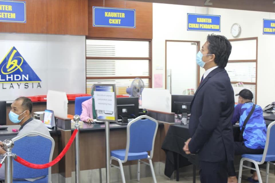 Semasa lawatan kerja tersebut beliau berkesempatan melihat situasi kaunter-kaunter LHDNM yang menguruskan rayuan Bantuan Prihatin Nasiona dan permohonan Geran Khas Prihatin.