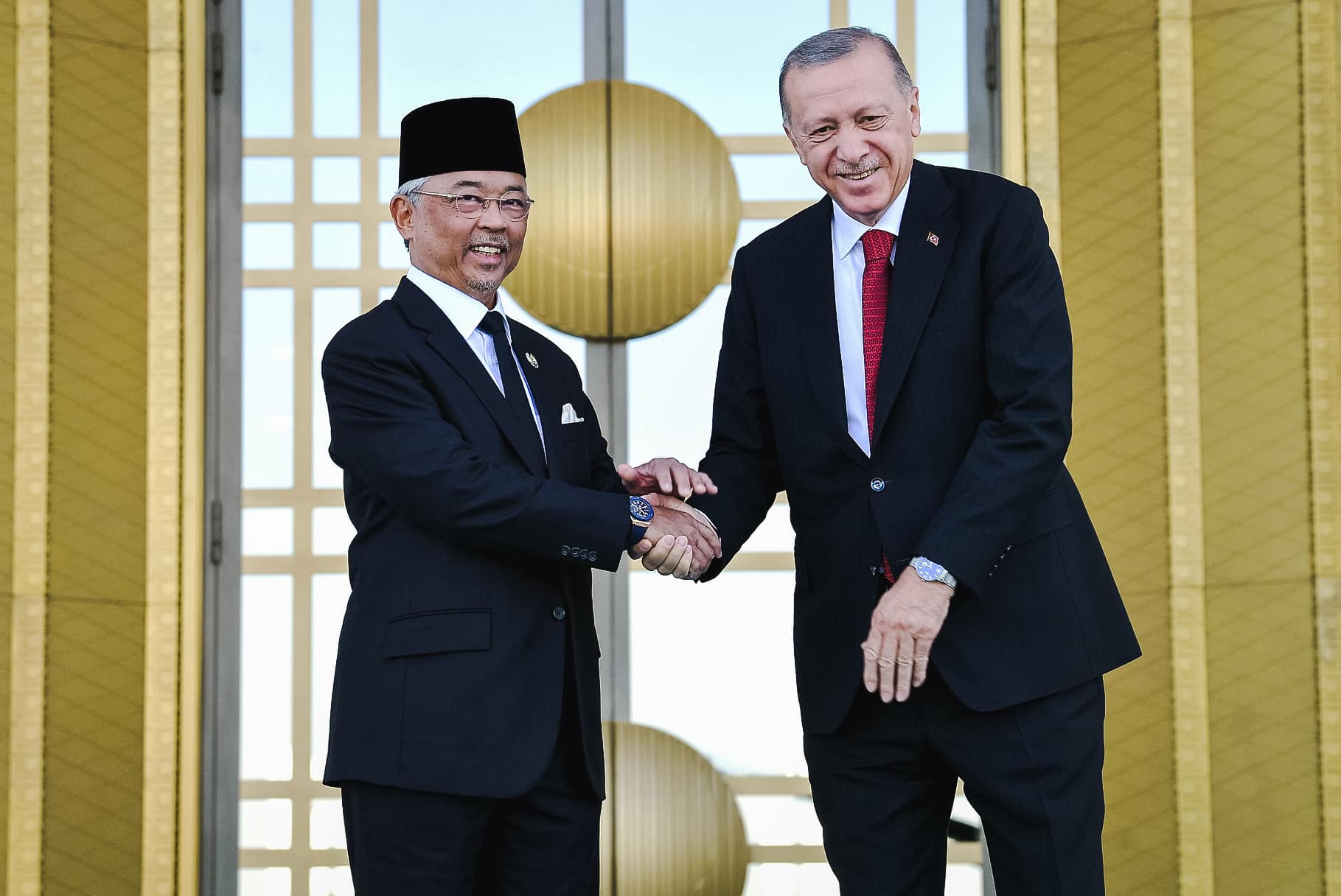 KDYMM Seri Paduka Baginda Yang di-Pertuan Agong telah diberi Sambutan Negara oleh Republik Turkiye sempena lawatan baginda dan disambut oleh TYT Recep Tayyip Erdogan, Presiden Republik Turkiye.