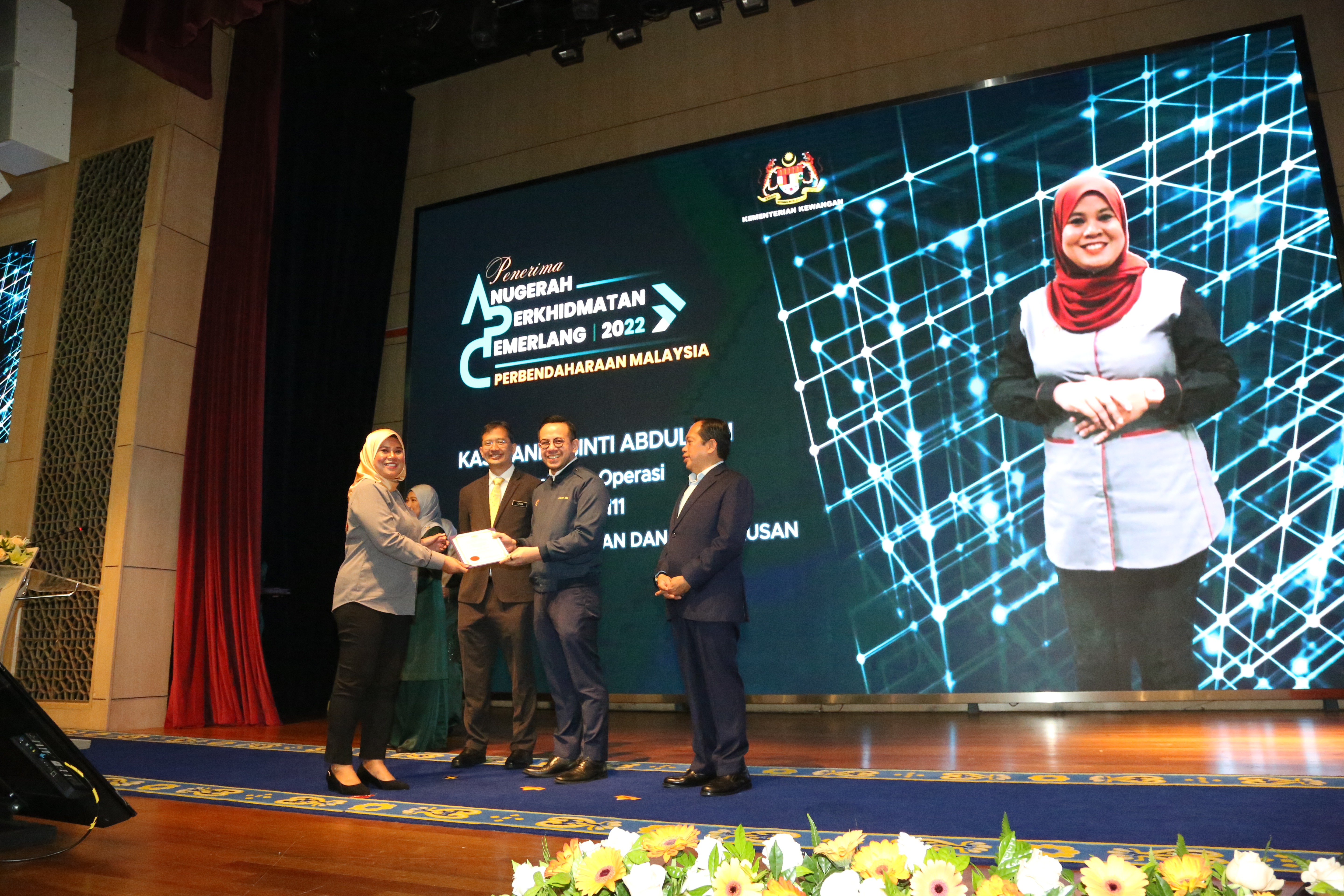 YB Datuk Seri Ahmad Maslan turut merakamkan setinggi-tinggi tahniah dan syabas kepada 130 penerima APC Perbendaharaan tahun 2022 dan menyeru agar warga Perbendaharaan mengamalkan nilai ABCDE (Akrab, Bijaksana, Cekap, Dedikasi, Efektif) dalam penyampaian perkhidmatan kepada rakyat.