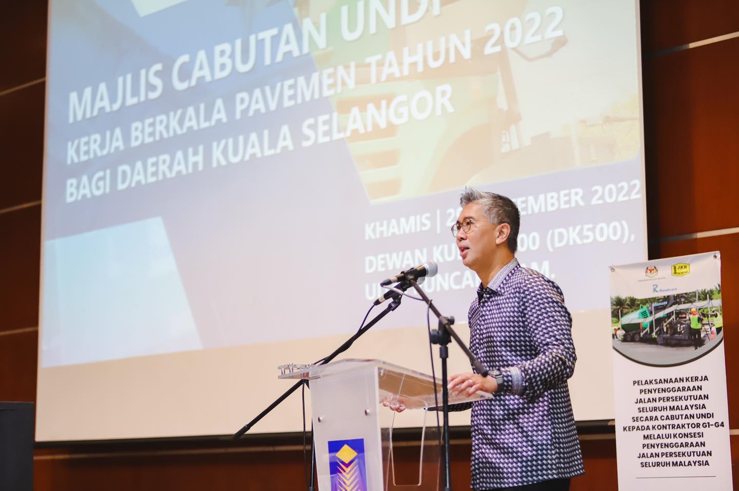 YB Senator Tengku Datuk Seri Utama Zafrul Tengku Abdul Aziz, Menteri Kewangan merakamkan ucapan terima kasih kepada YB Dato' Sri Haji Fadillah Haji Yusof, Menteri Kerja Raya di atas jemputan untuk menghadiri Majlis Cabutan Undi Kerja Berkala Pavemen 2022 bagi Daerah Kuala Selangor.
