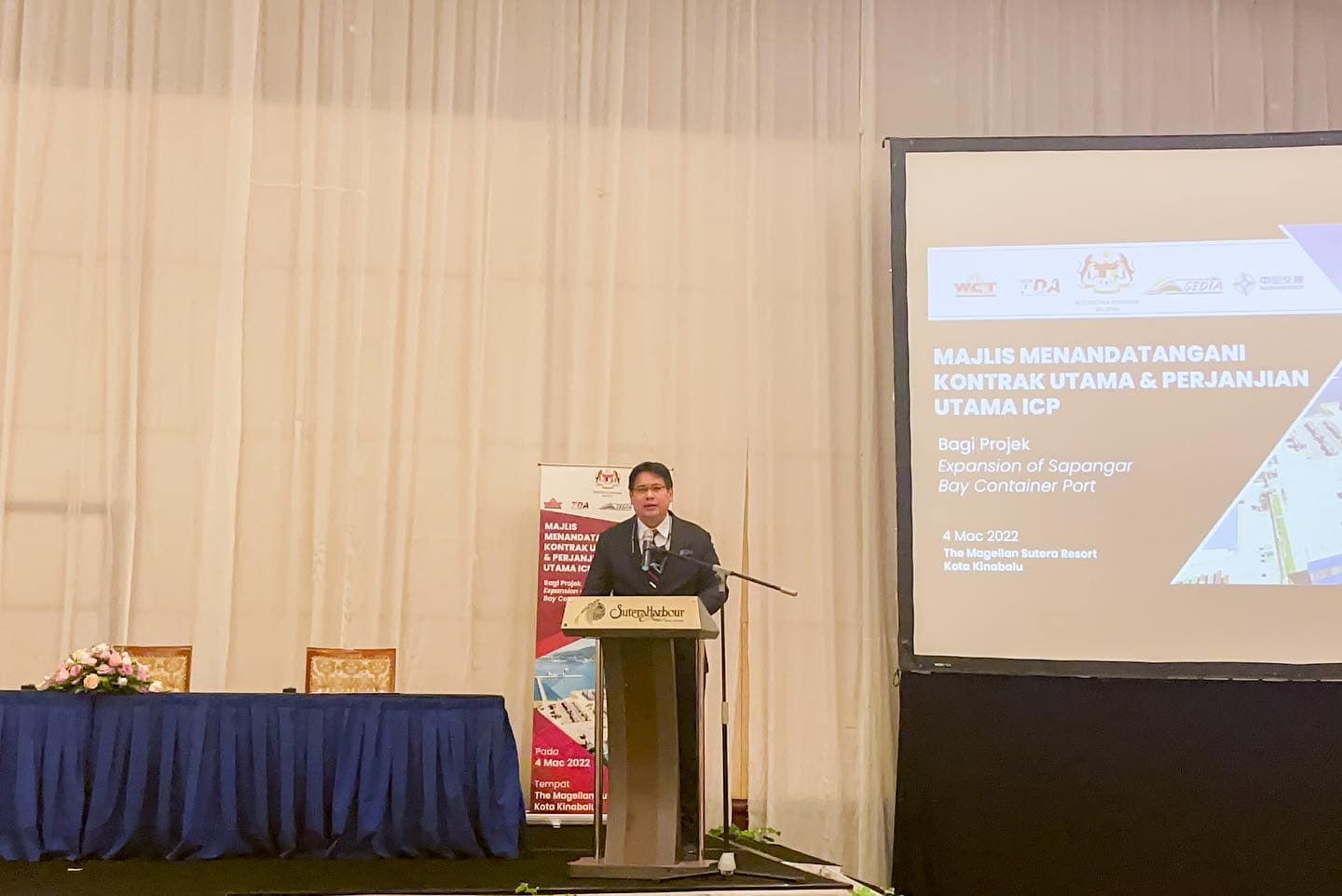 Beliau turut merakamkan ucapan tahniah kepada pihak Sabah Economic Development and Investment Authority (“SEDIA”) dan WCT Holdings Bhd. – China Communications Construction Company (M) Sdn. Bhd. (CCCC) Joint Venture (“WCJV”) atas kejayaan memeterai Kontrak Perolehan Utama bersekali dengan Perjanjian Utama ICP bagi Projek Expansion of the Sapangar Bay Container Port.
