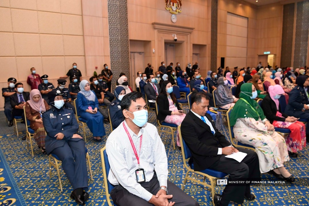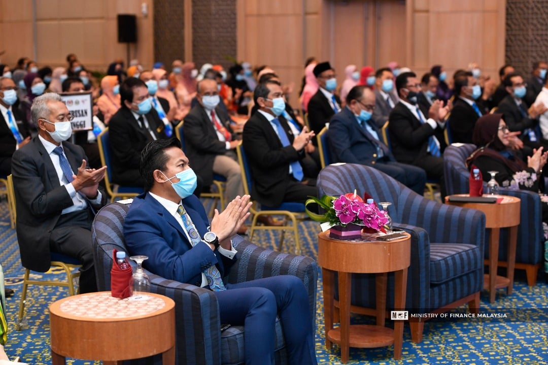 YB Senator Tengku Dato' Sri Zafrul Tengku Abdul Aziz, Menteri Kewangan telah menyampaikan ucaptama di Majlis Perhimpunan Bulanan bersemuka pertama Warga Kementerian Kewangan dan Agensi dengan pematuhan SOP untuk perhimpunan besar.Turut hadir, YB Tuan Mohd Shahar Abdullah,Timbalan Menteri Kewangan II.