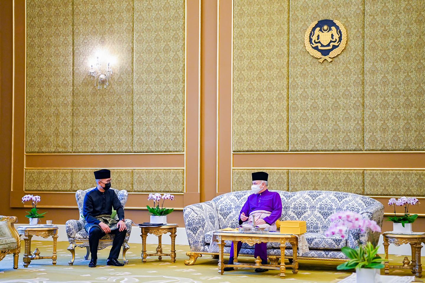 YB Senator Tengku Datuk Seri Utama Zafrul Tengku Abdul Aziz, Menteri Kewangan telah berkesempatan menjunjung kasih Duli Yang Maha Mulia Sultan Nazrin Muizzuddin Shah ibni Almarhum Sultan Azlan Muhibbuddin Shah Al-Maghfur-Lah, Timbalan Yang di-Pertuan Agong, atas perkenan DYMM Tuanku menerima menghadap beliau di Istana Negara untuk beliau membentangkan perkembangan terkini penyediaan #Bajet2022 serta pencapaian-pencapaian terkini kewangan dan ekonomi negara.