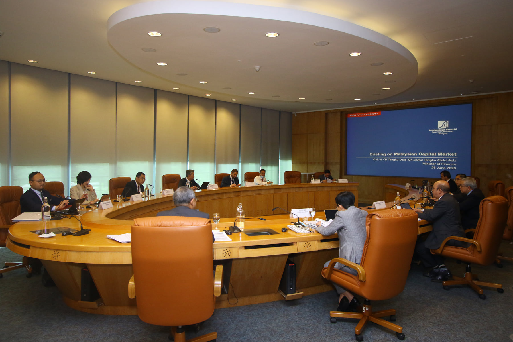 YB Senator Tengku Dato' Sri Zafrul Tengku Abdul Aziz, Menteri Kewangan telah mengadakan Mesyuarat bersama pihak pengurusan Suruhanjaya Sekuriti Malaysia (SC) untuk membincangkan peranan pasaran modal dalam merangsang ekonomi, serta langkah langkah ‘forward looking’ dalam pengawalseliaan dan pembangunan pasaran modal. Turut hadir adalah Datuk Syed Zaid Albar, Pengerusi SC, dan pengurusan tertinggi.