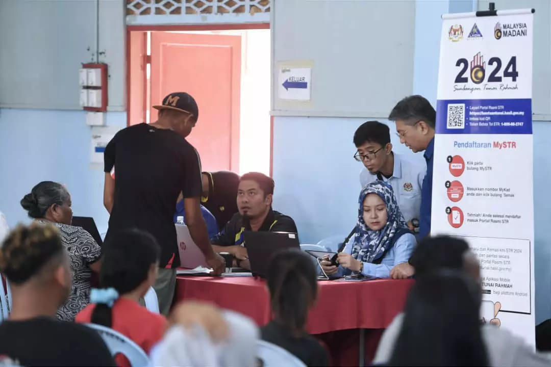 Pasukan Sumbangan Tunai Rahmah (STR) 2024, Kementerian Kewangan (MOF) telah turun padang ke Program Penunaian STR 2024 melibatkan masyarakat Orang Asli di Dewan Orang Ramai RPS Betau, Lipis, Pahang.