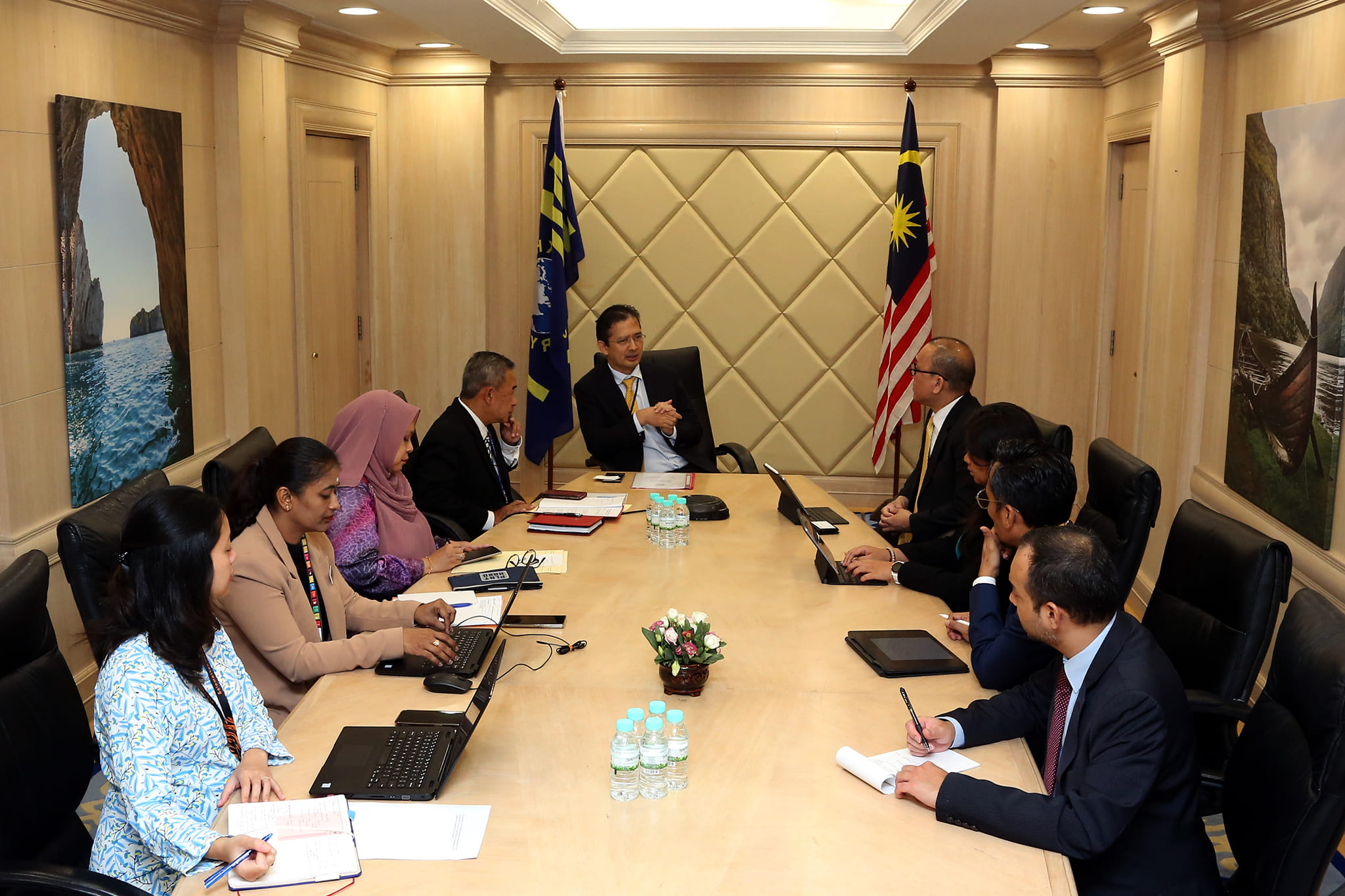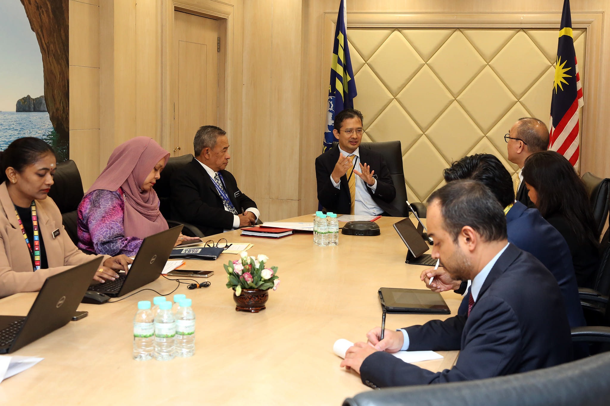 YBhg. Datuk Johan Mahmood Merican, Ketua Setiausaha Perbendaharaan telah berkesempatan menerima kunjungan hormat oleh Dr. Wempi Saputra, Executive Director of the World Bank Group for the Southeast Asia Voting Group (SEAVG) bersama delegasi iaitu Cik Nur Atiqah Mohd Yassin dan Encik Halim Hafedz Salim.