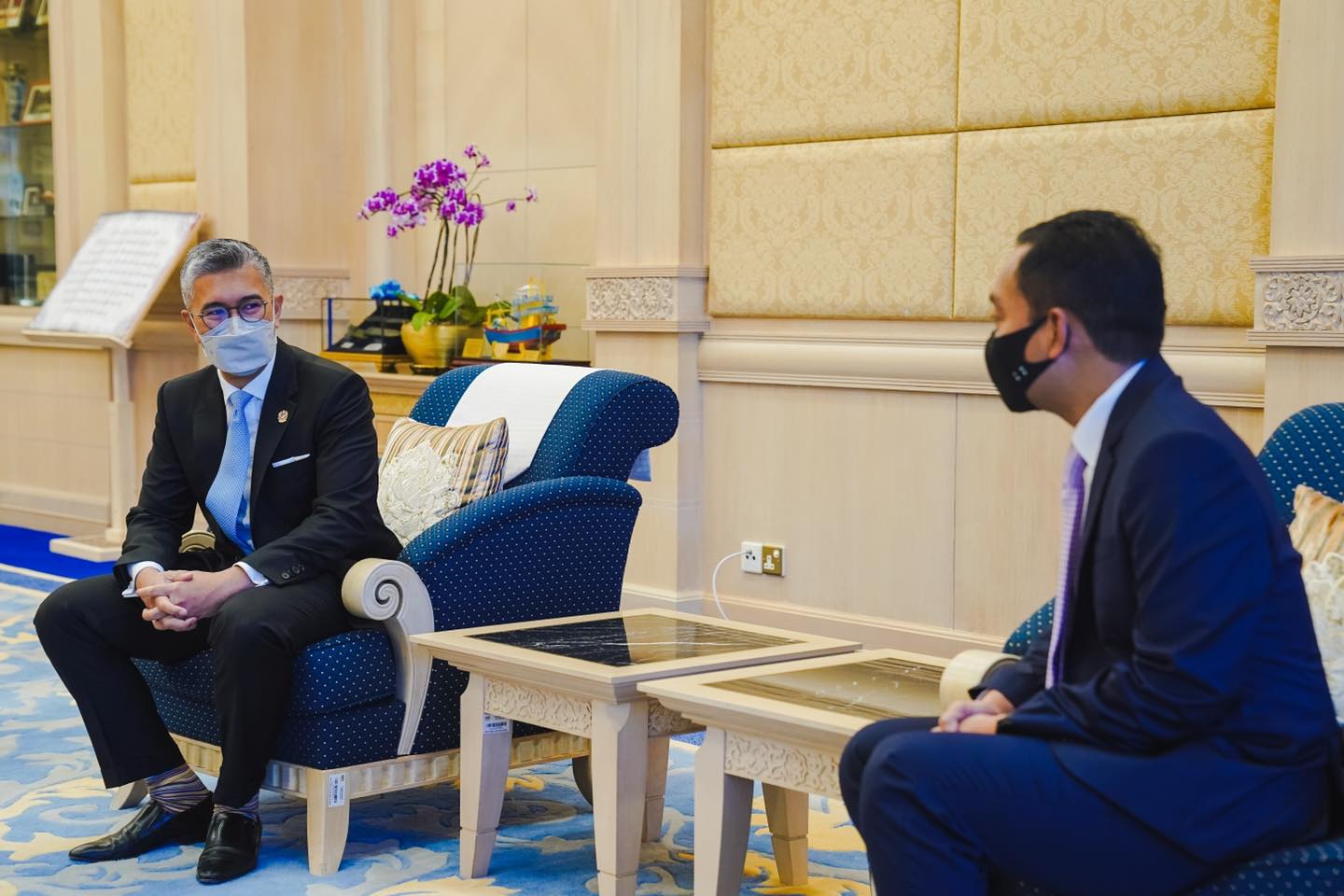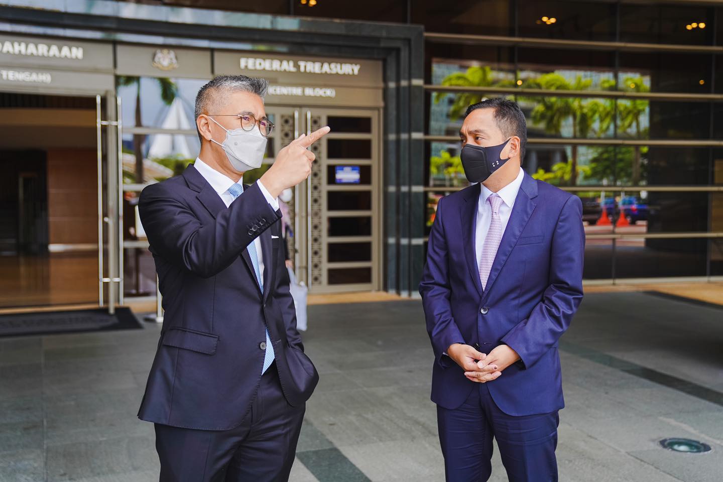 YB Senator Tengku Datuk Seri Utama Zafrul Tengku Abdul Aziz, Menteri Kewangan telah berkesempatan menerima kunjungan hormat daripada YAB Datuk Onn Hafiz Dato’ Ghazi, Menteri Besar Johor di Kompleks Kementerian Kewangan Malaysia (MOF), Putrajaya.