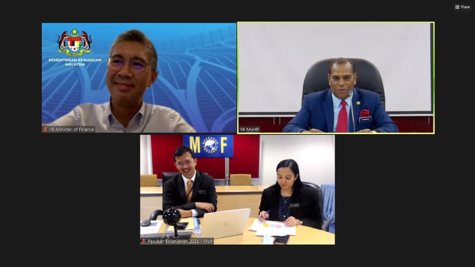 YB Senator Tengku Dato' Sri Zafrul Tengku Abdul Aziz, Menteri Kewangan telah mengadakan Sesi Libat Urus Belanjawan 2021 secara maya bersama Kementerian. Beliau mengucapkan terima kasih kepada YB menteri-menteri dan pengurusan dari Kementerian Perusahaan Perladangan & Komoditi dan Kementerian Sumber Manusia yang meluangkan masa untuk sesi ini. ⠀⠀ ⠀⠀