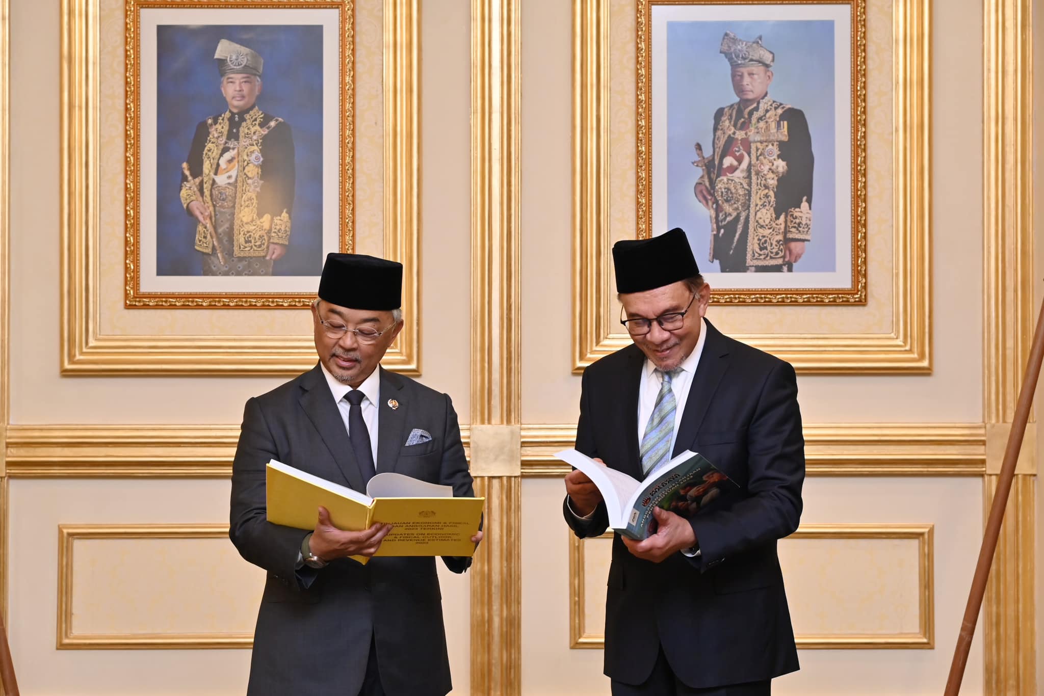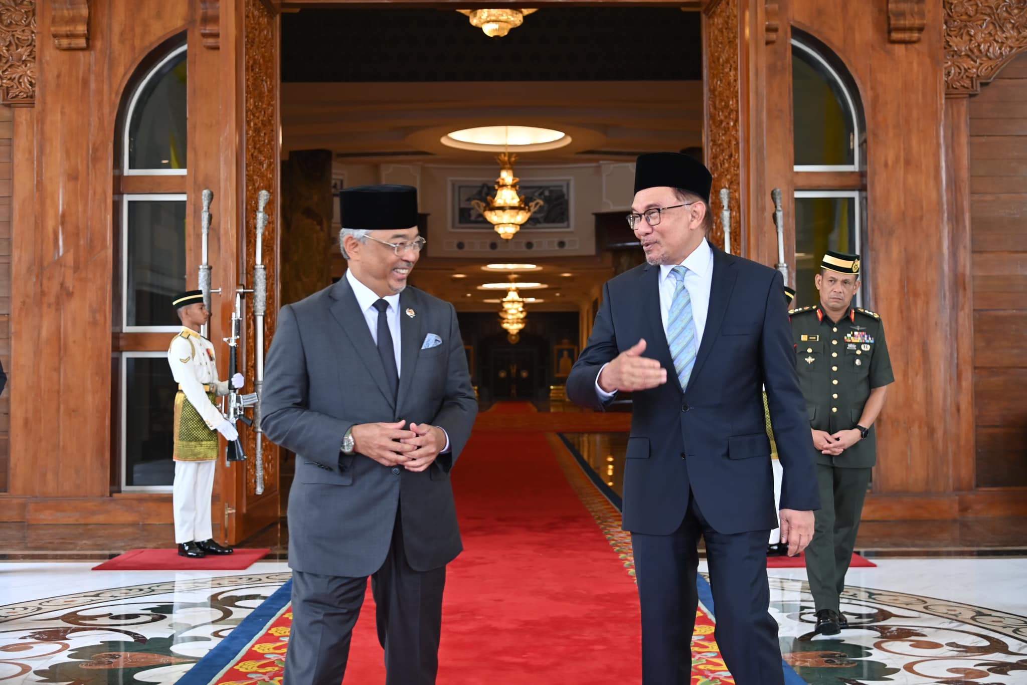 Menjunjung kasih KDYMM Seri Paduka Baginda Yang di-Pertuan Agong, Al-Sultan Abdullah Ri’ayatuddin Al-Mustafa Billah Shah Ibni Almarhum Sultan Haji Ahmad Shah Al-Musta’in Billah atas perkenan menerima YAB Dato' Seri Anwar Ibrahim, Perdana Menteri dan Menteri Kewangan menghadap bagi urusan mesyuarat Pra-Kabinet.