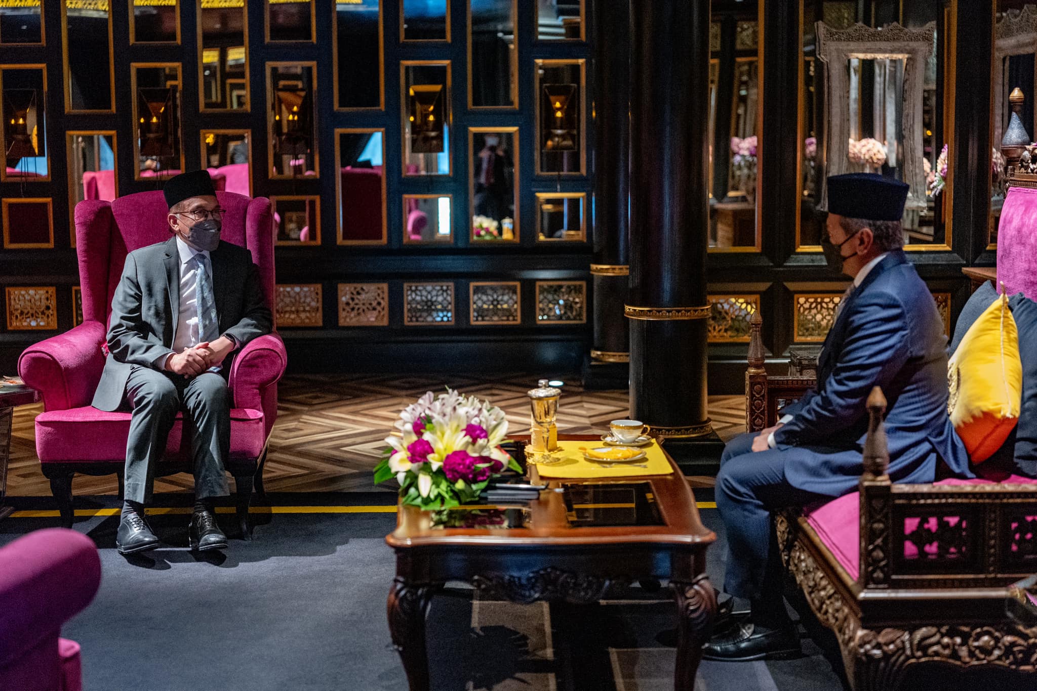 Menjunjung kasih Kebawah Duli Yang Maha Mulia Sultan Terengganu Al-Wathiqu Billah Sultan Mizan Zainal Abidin ibni Almarhum Sultan Mahmud Al-Muktafi Billah Shah atas perkenan menerima YAB Dato' Seri Anwar Ibrahim, Perdana Menteri merangkap Menteri Kewangan menghadap di Istana Syarqiyyah, Kuala Terengganu.