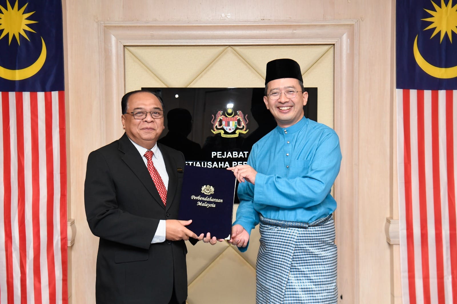 Sesi penyerahan surat penempatan kepada YBrs. Encik Norali @ Ag Norali Ag Damit sebagai Pegawai Kewangan Persekutuan Sabah dan YBrs. Tuan Kamaruddin M Ripin, Ketua Unit Integriti daripada YBhg. Datuk Johan Mahmood, Ketua Setiausaha Perbendaharaan telah diadakan di pejabat Ketua Setiausaha Perbendaharaan, Kementerian Kewangan (MOF).