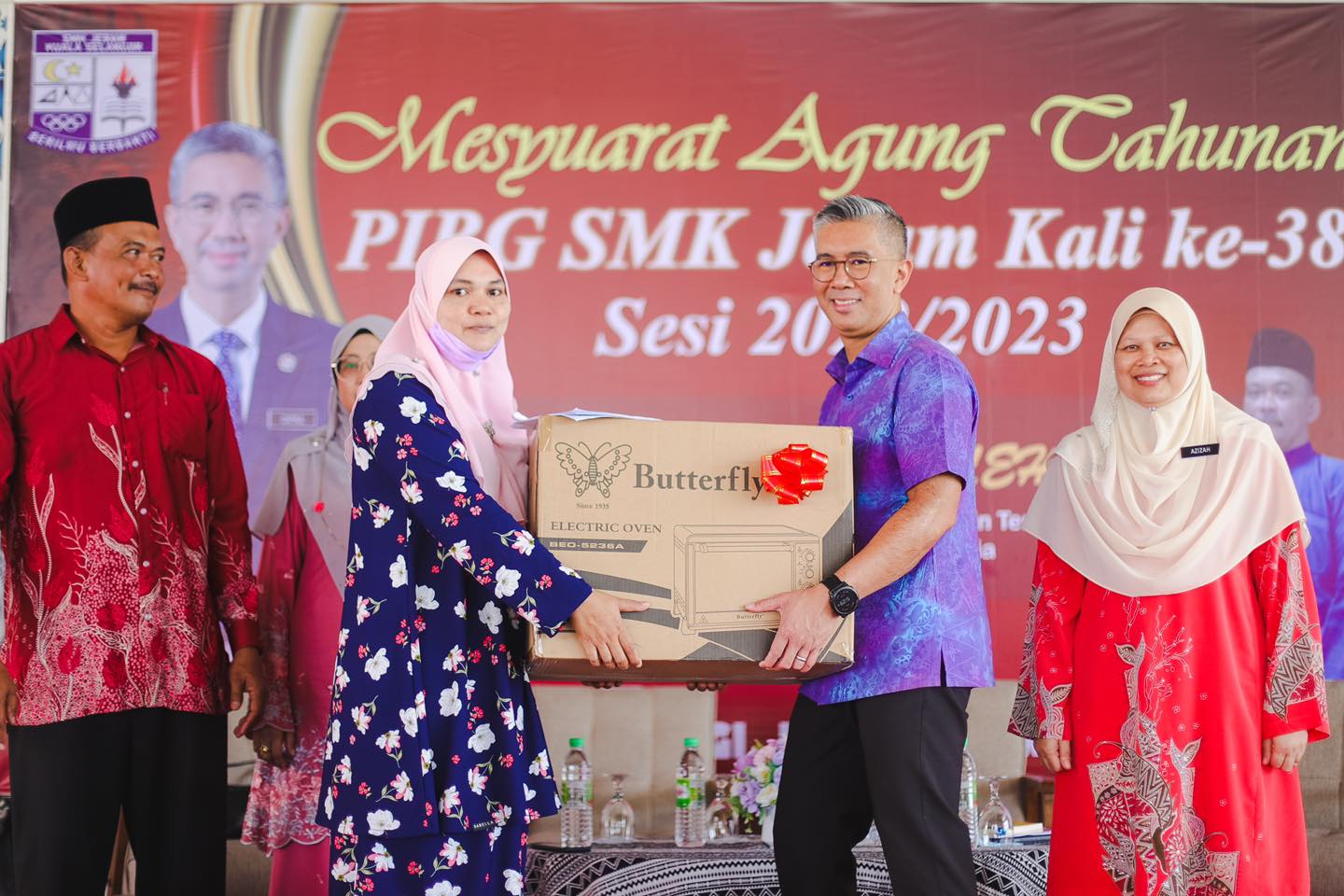 Beliau turut berkesempatan merakamkan ucapan terima kasih kepada PIBG dan pihak Sekolah Menengah Kebangsaan Jeram kerana sudi menjemput beliau.