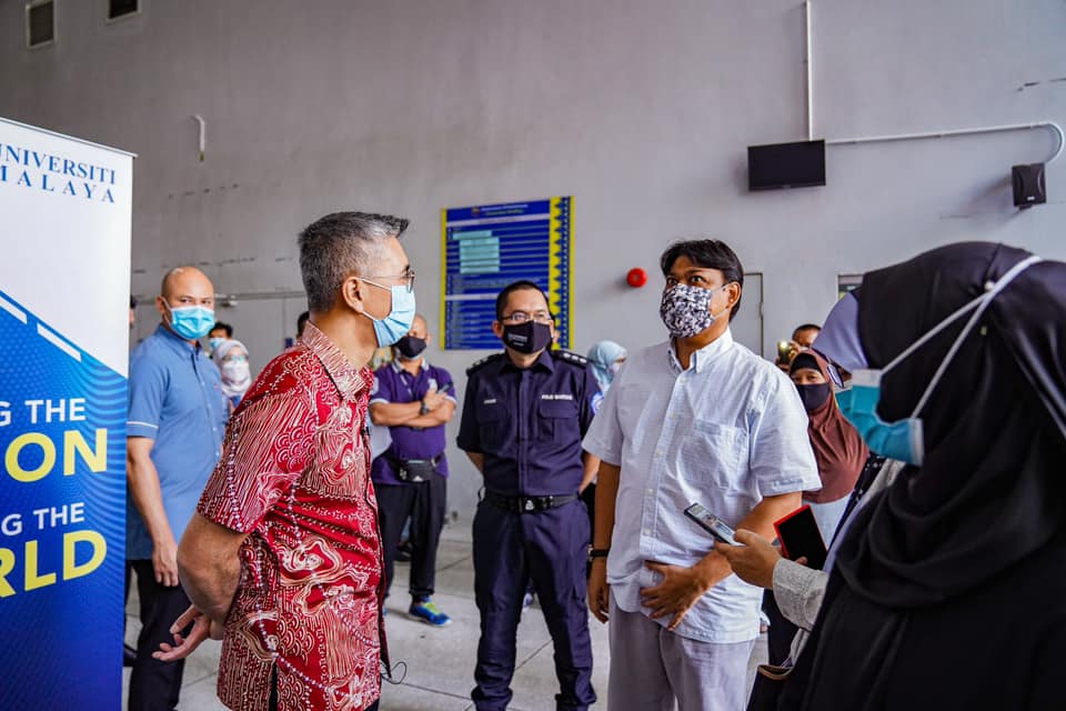 YB Senator Tengku Datuk Seri Utama Zafrul Tengku Abdul Aziz, Menteri Kewangan telah berkesempatan ke Pusat Pemberian Vaksin Universiti Malaya (PPV UM) di Bangsar, Kuala Lumpur untuk meninjau operasi dan turut mendapatkan maklumat terkini mengenai pelaksanaan proses pemberian vaksin di PPV UM serta berkesempatan menyampaikan sumbangan makanan kepada para frontliners yang bertugas.
